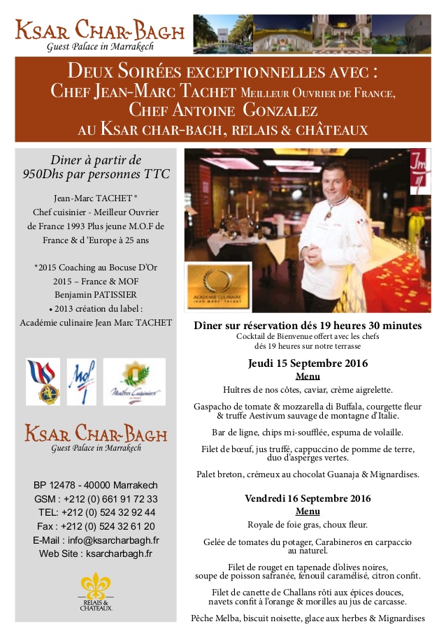 Notre client, le chef Jean-Marc Tachet, Meilleur Ouvrier de France, ouvrira ses portes les 15 et 16 septembre 2016.Notre